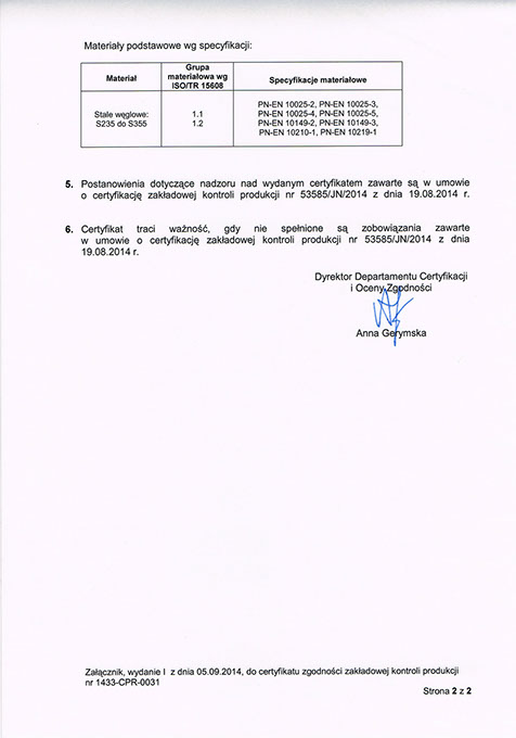 wg normy PN-EN 1090-2+A1:2012 IDT EN 1090-2:2008+A1:2011